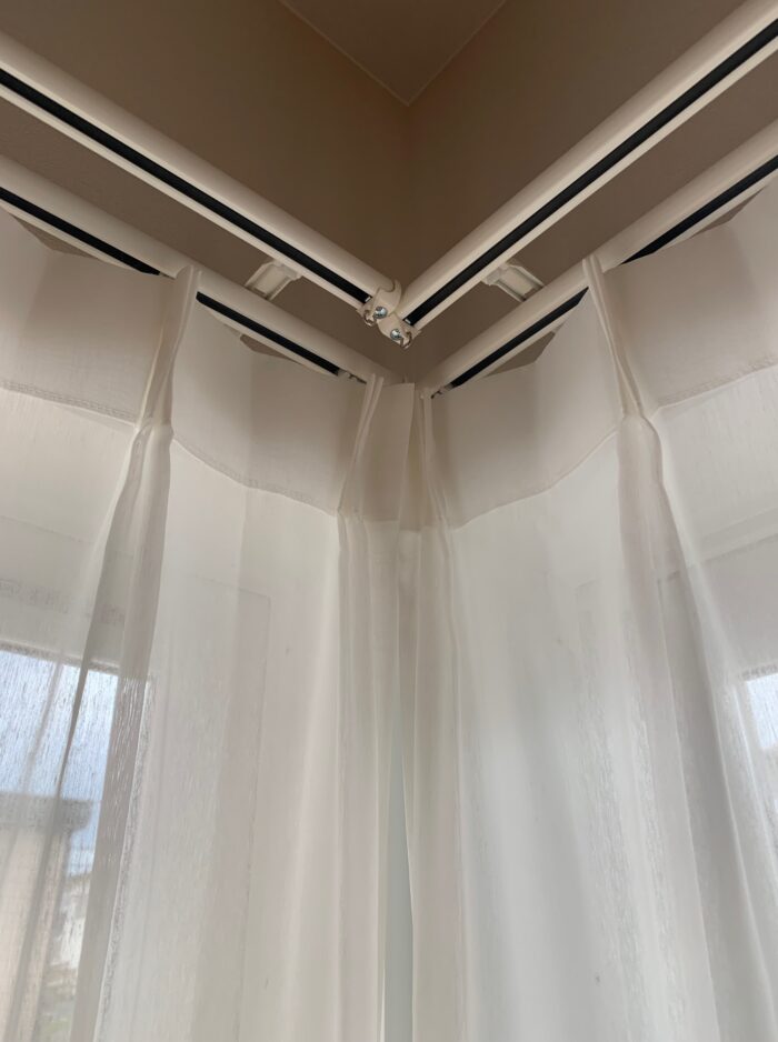 カーテンレールはカーブレールではなく、コーナーで凸に長さを計算して合わせてます(^^)/